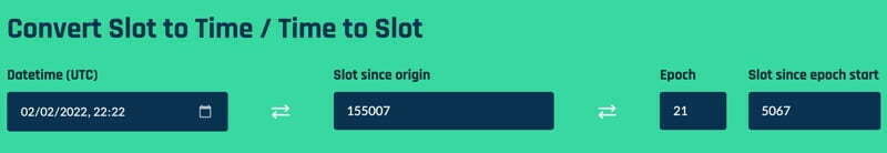 You can either type as an input: – Date/time (UTC) (the format should adjust according to your browser locale). – Slot number since genesis – Epoch + slot number since epoch start.