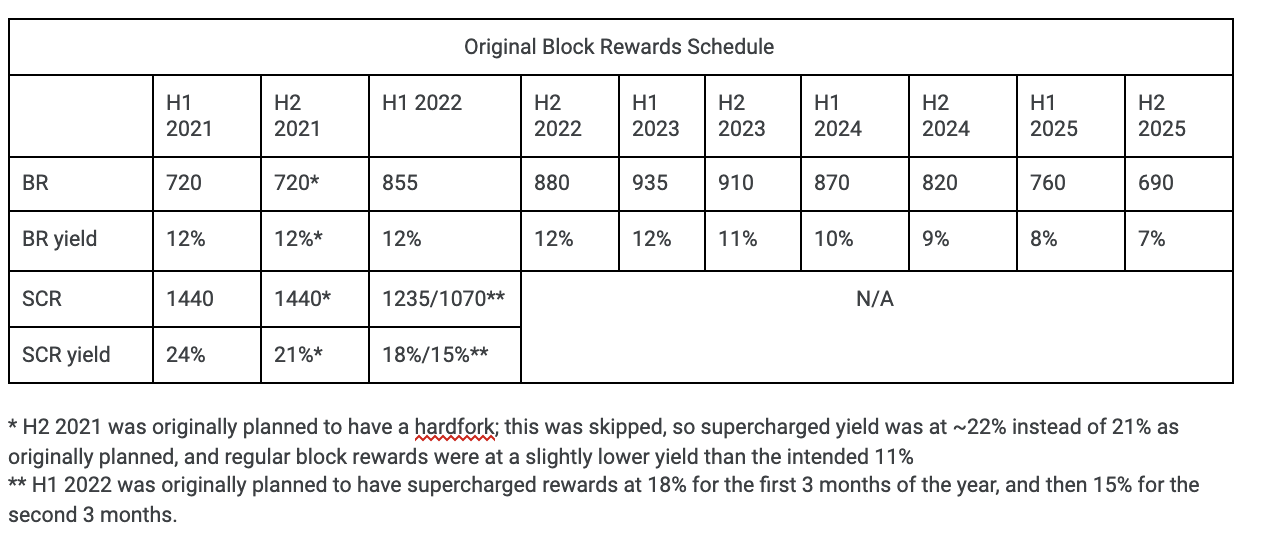 | Block Rewards Schedule if Block Rewards Unchanged (720 block rewards & 1440 supercharged ongoing) |
