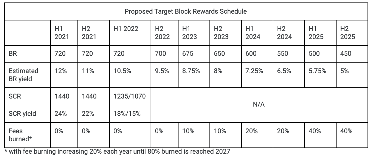 Given that, Iโm proposing to update the protocolโs planned inflation and block reward schedule from the original tokenomics blog post 15.